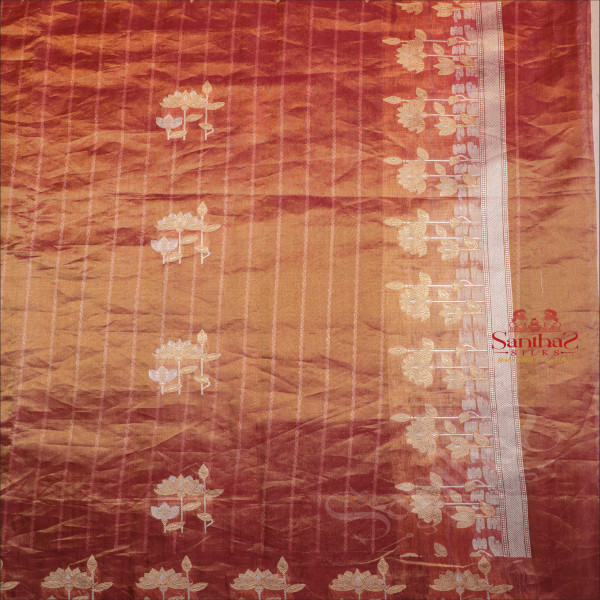 KORA KHATAN SILK SAREE IN MAGENTA & GOLD MIXED COLOUR WITH LOTUS FLOWER MOTIFS