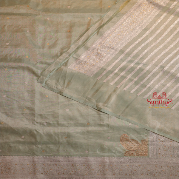 SATIN KHATAN PURE BANARAS SAREE IN TEA GREEN COLOUR