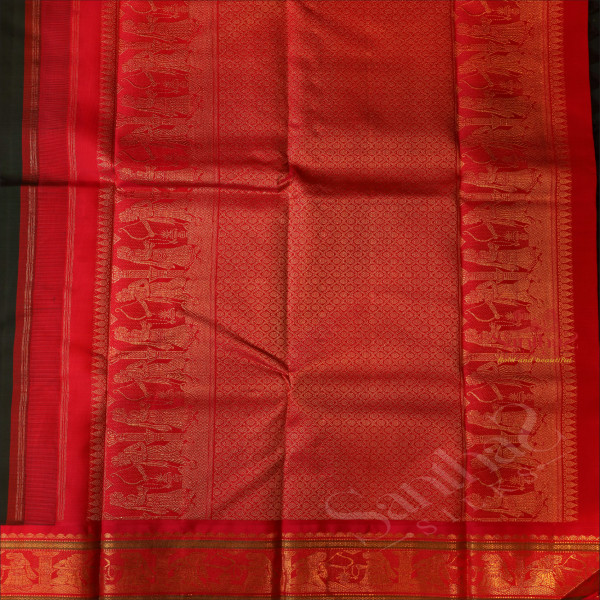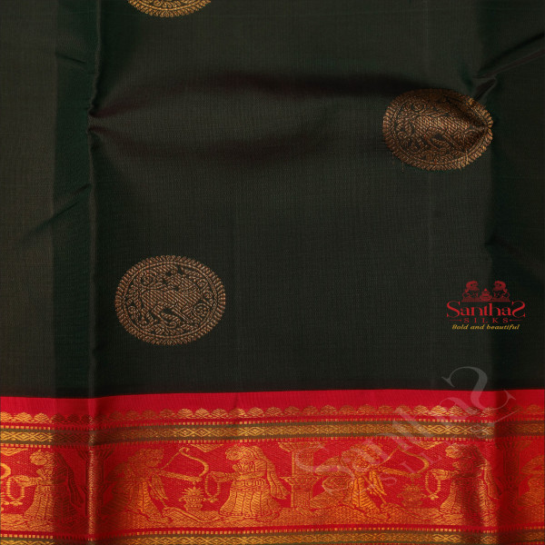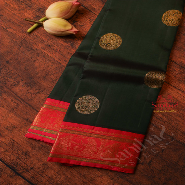 BOTTLE GREEN BODY WITH GOLDEN ZARI CHAKKARAM BUTTA WITH CONTRAST BLOUSE & BORDER