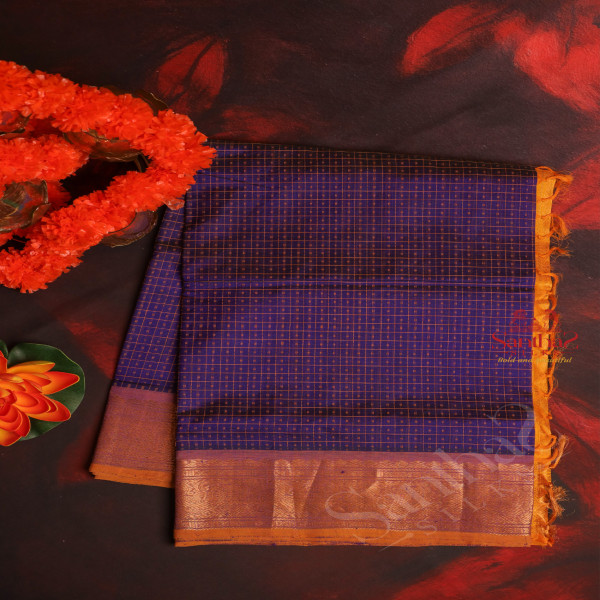 VIOLET COLOUR CHECKED BODY WITH CONTRAST BLOUSE & BORDER