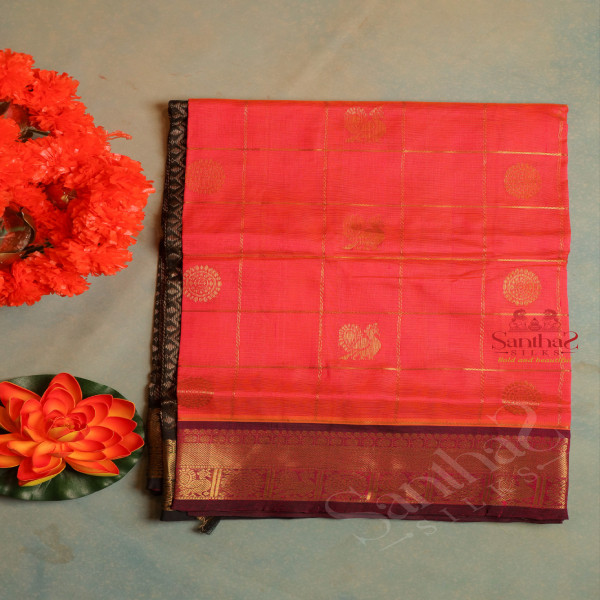 LIGHT PINK COLOUR CHECKED BODY WITH GOLDEN ZARI ANNAM BUTTA WITH CONTRAST BLOUSE & BORDER