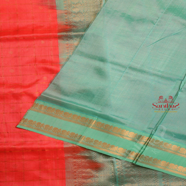 PEACH COLOUR CHECKED BODY WITH GOLDEN ZARI BUTTA WITH CONTRAST BLOUSE & BORDER