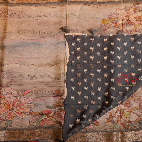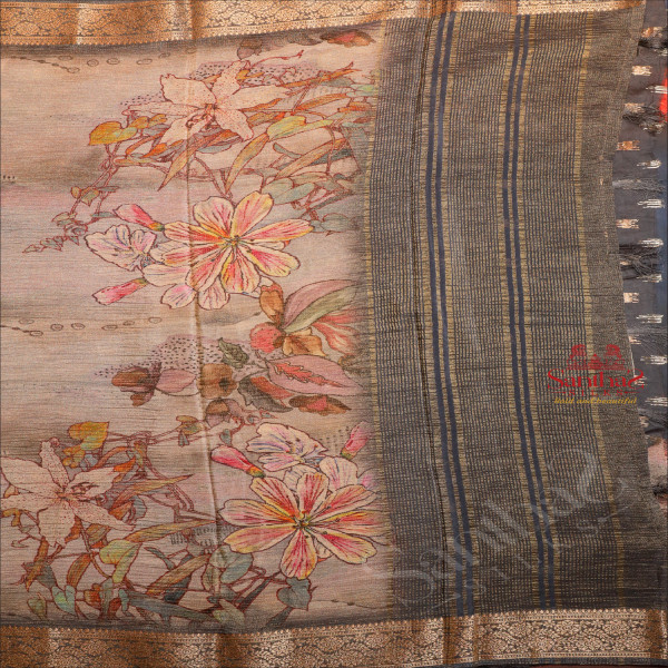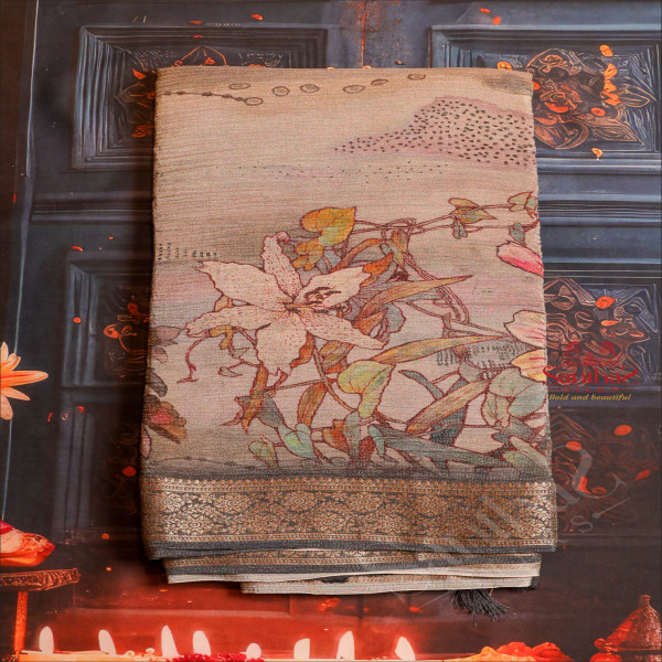 GEORGETTE CRUSH GREY COLOUR BODY WITH FANCY MOTIFS AND CONTRAST PALLU & BLOUSE