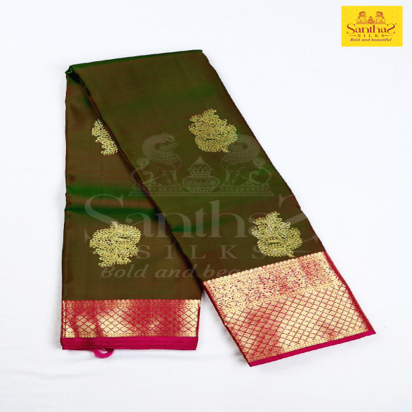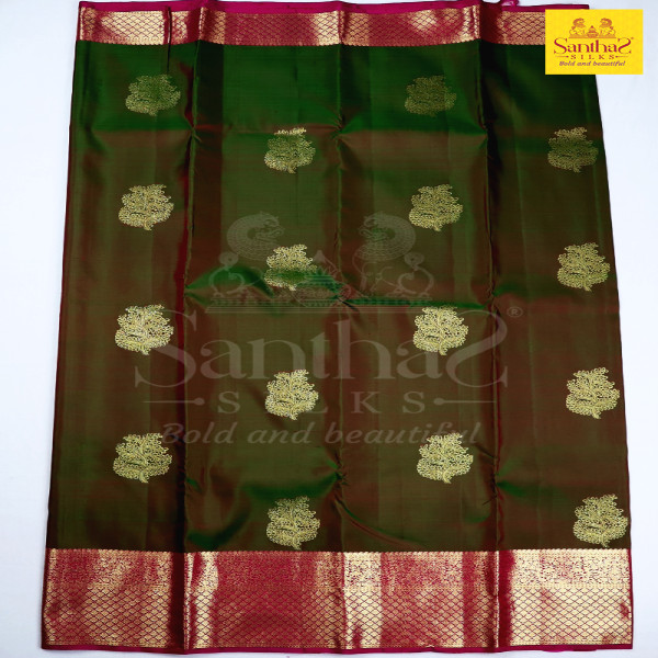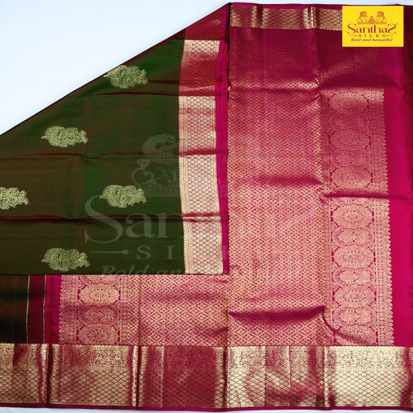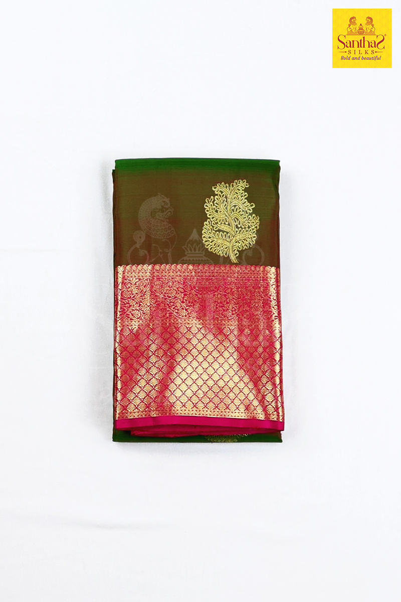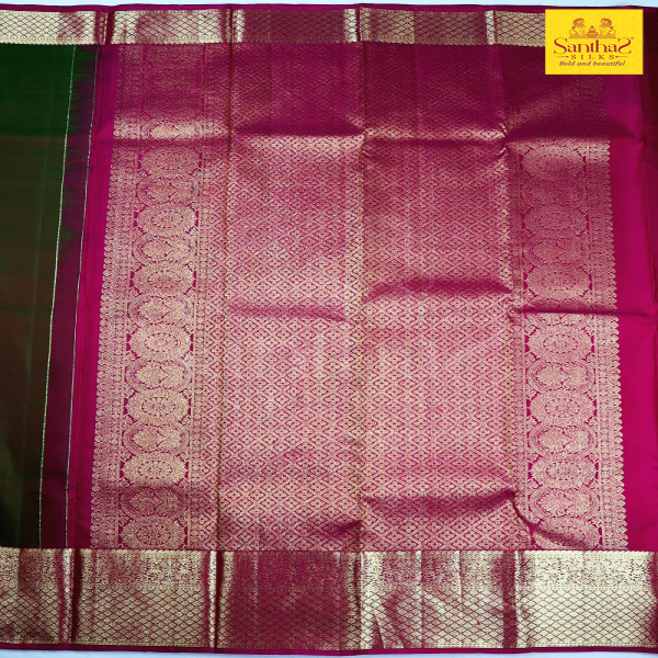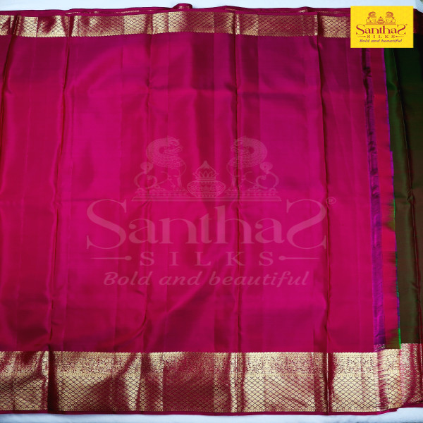 Mangalyam Green Pure Silk with Contrast Rani Pink Border