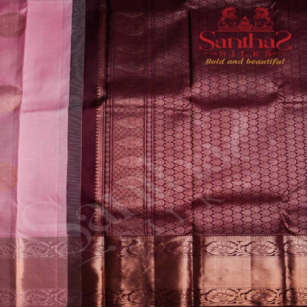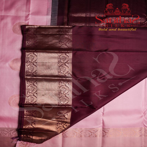 ROSE MILK COLOUR BODY IN COPPER ZARI BUTTA WITH CONTRAST BLOUSE