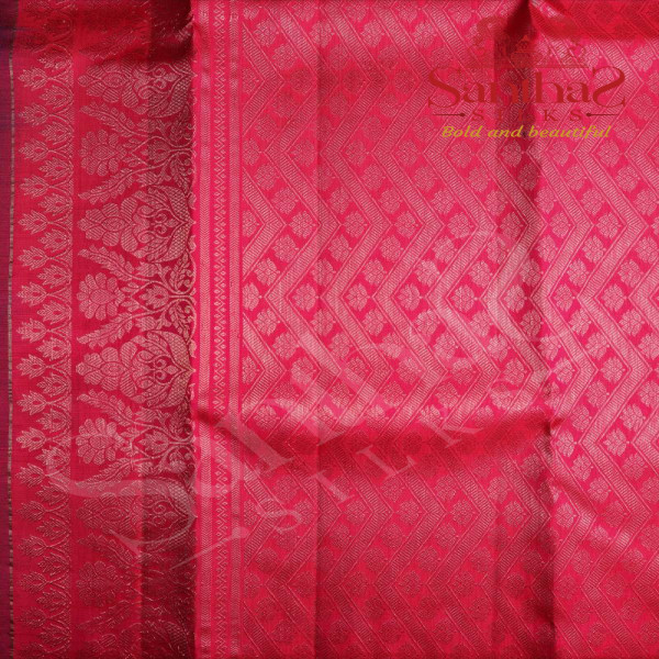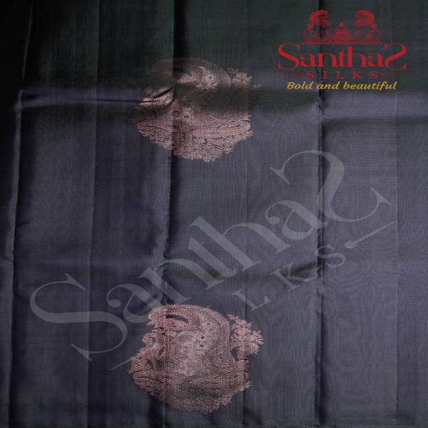 BORDERLESS DARK GREEN COLOUR BODY WITH COPPER AND SILVER ZARI BIG MOTIFS AND CONTRAST COLOUR BOLUSE