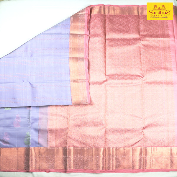 Lilac Shade Pure Silk Saree with Jimki Kammal Paterns Baby Pink Border