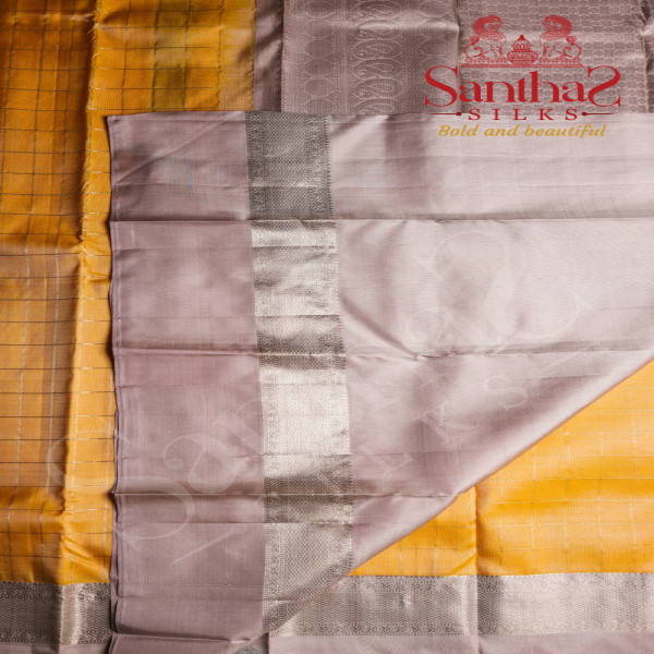 YELLOW COLOUR BODY CHECKS PATTERN WITH CONTRAST BLOUSE & BORDER