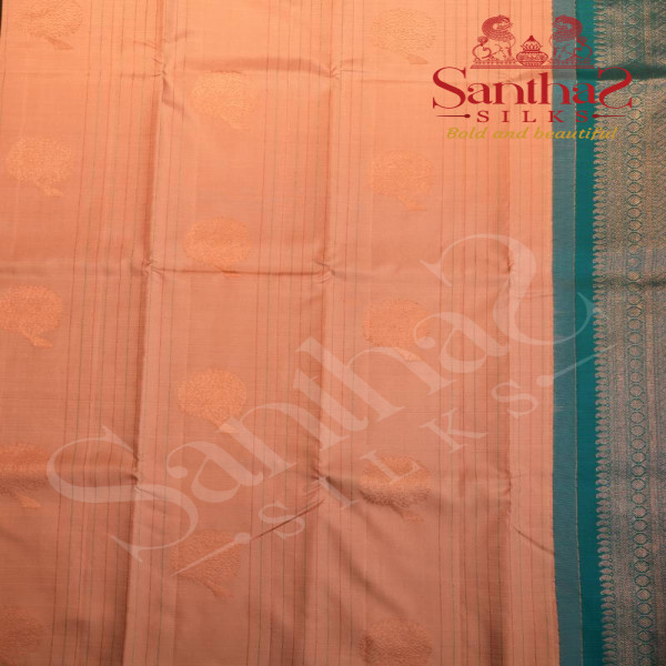 BORDERLESS PANTONE PINK COLOUR BODY WITH ROSE GOLD & SILVER ZARI STRIPS, MOTIFS AND CONTRAST BLOUSE
