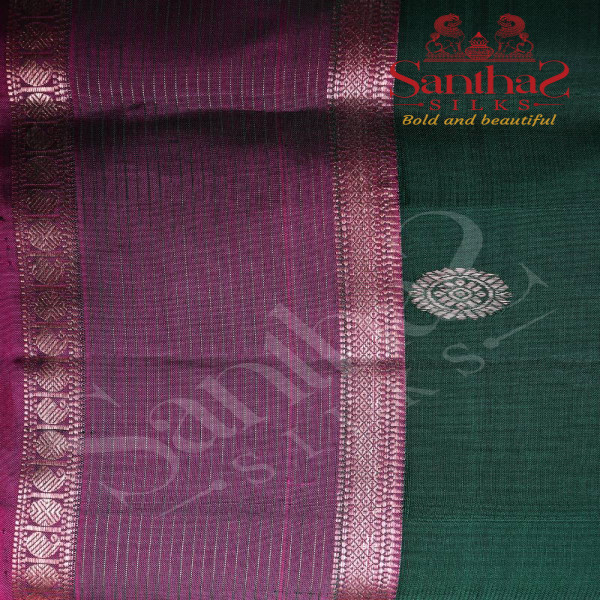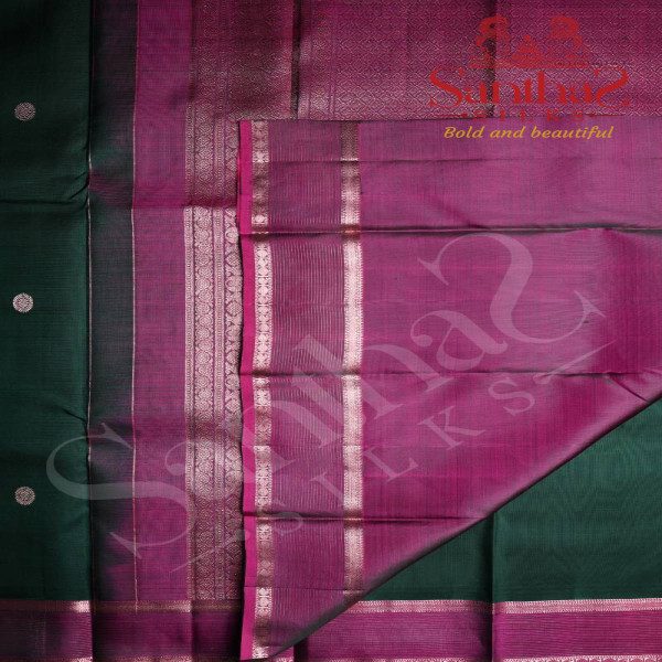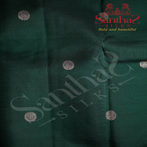 FOREST GREEN COLOUR BODY COPPER COIN ZARI BUTTA WITH CONTRAST BLOUSE & BORDER