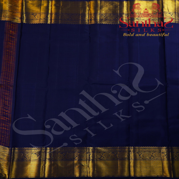 Pink with Yellow Checks Pure Silk Saree with Navy Blue Border