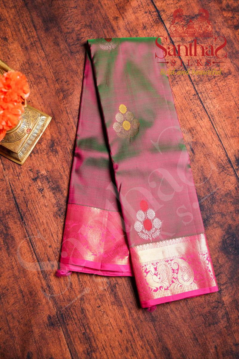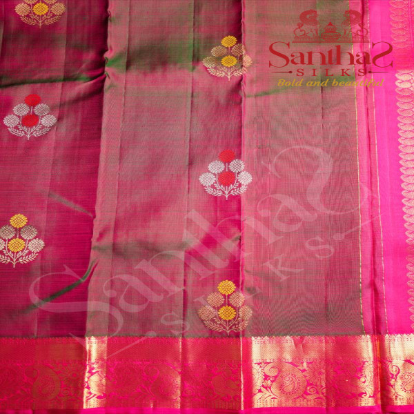 PINKISH GREEN COLOUR BODY FLORAL PATTERN BUTTA WITH CONTRAST BLOUSE & BORDER