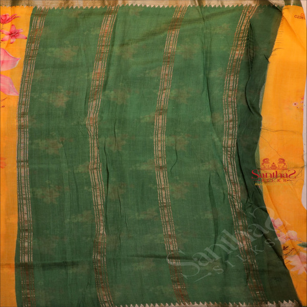 MANGALAGIRI COTTON BODY WITH DIGITAL PRINT DESIGN IN MANGO YELLOW COLOUR AND CONTRAST COLOUR DIGITAL PRINT DESIGN PALLU & BLOUSE