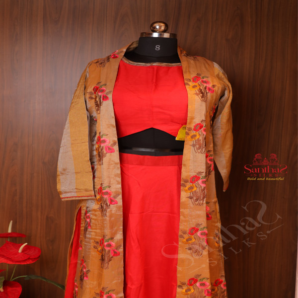 GOLDEN COLOUR CHANDERI SALWAR WITH OVERCOAT & SKIRT