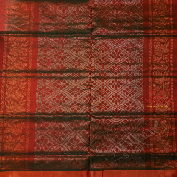 PASTEL PEACH COLOUR BODY WITH GOLDEN AND SILVER ZARI LEAF BUTTA WITH CONTRAST BLOUSE & PALLU
