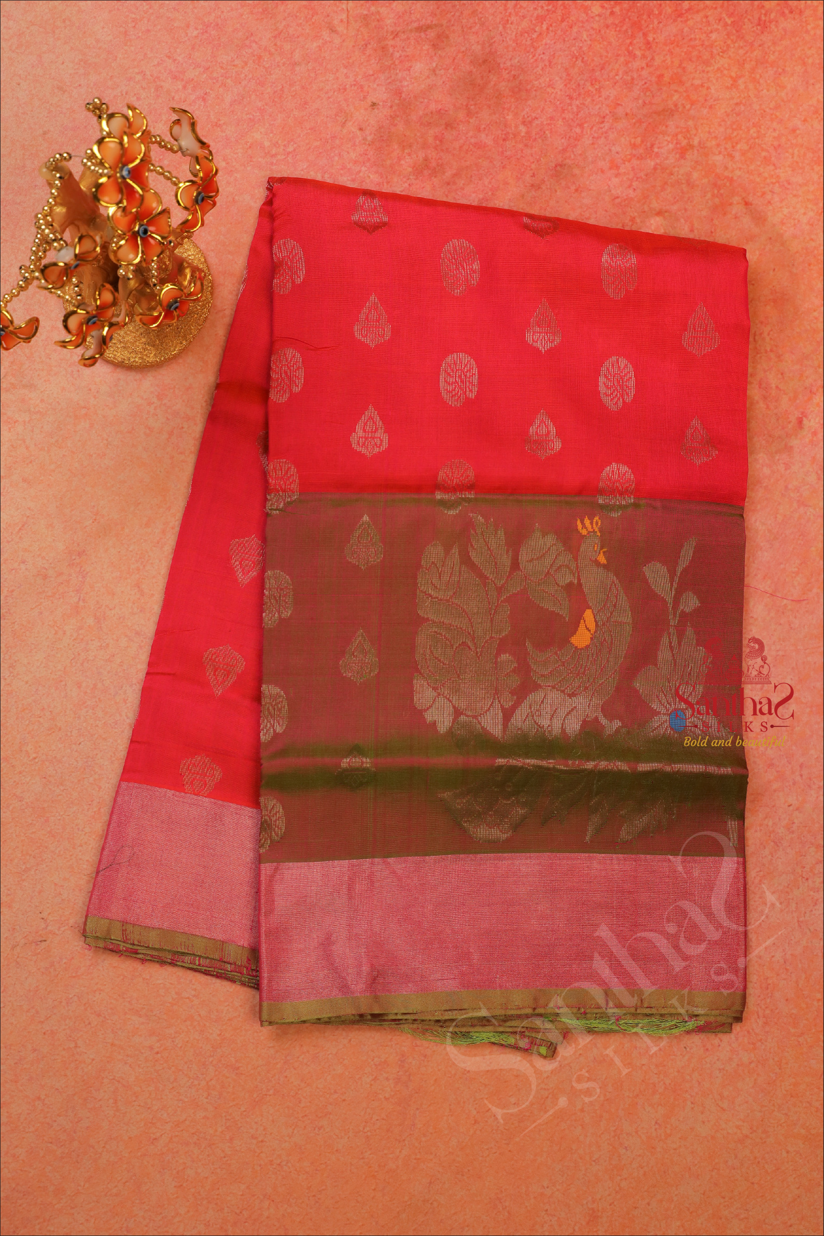 BORDERLESS DUAL SHADE PINK COLOUR BODY WITH SILVER ZARI BUTTA WITH SELF BLOUSE