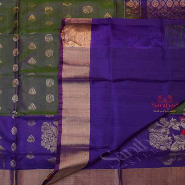 DUAL SHADE GREEN COLOUR BODY WITH SILVER ZARI BUTTA WITH CONTRAST BLOUSE & BORDER