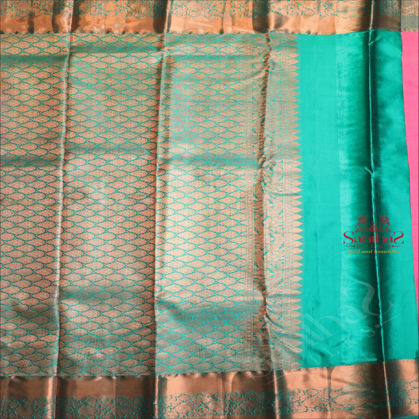 BABY PINK COLOUR BODY WITH JACQUARD FLORAL EMBOSED IN COPPER ZARI WITH CONTRAST BLOUSE & BORDER