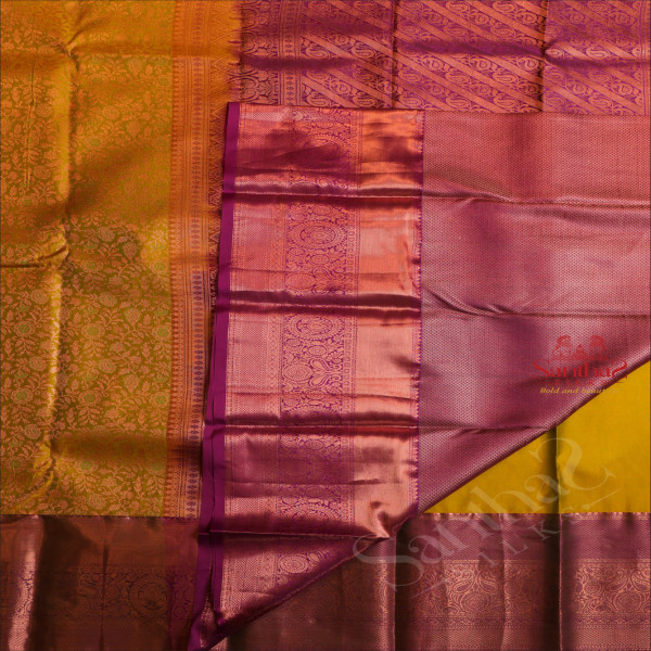 MUSTARD YELLOW COLOUR BODY WITH JACQUARD FLORAL EMBOSED WITH CONTRAST BLOUSE & BORDER
