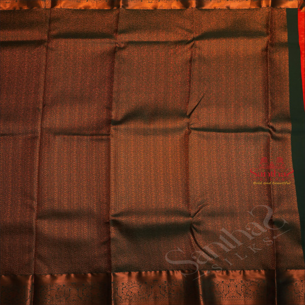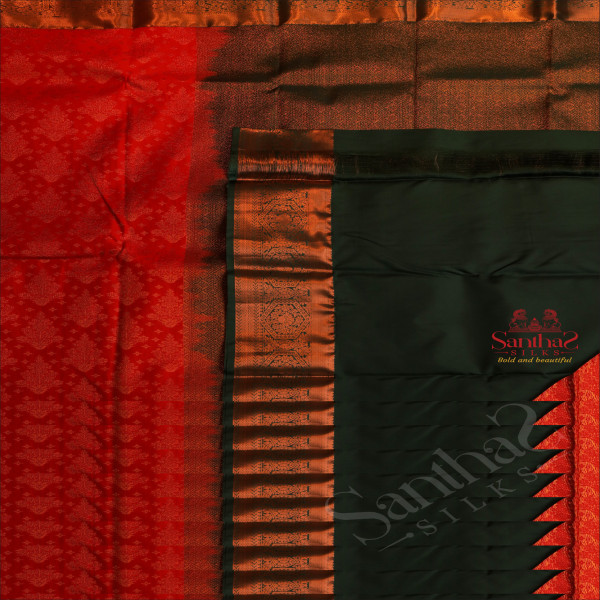 BRIGHT RED COLOUR BODY WITH JACQUARD FLORAL EMBOSED WITH CONTRAST DARK GREEN BLOUSE & BORDER