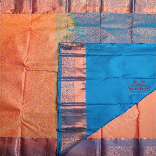 CRAYOLA PEACH COLOUR BODY WITH JACQUARD FLORAL EMBOSED WITH CONTRAST BLOUSE & BORDER