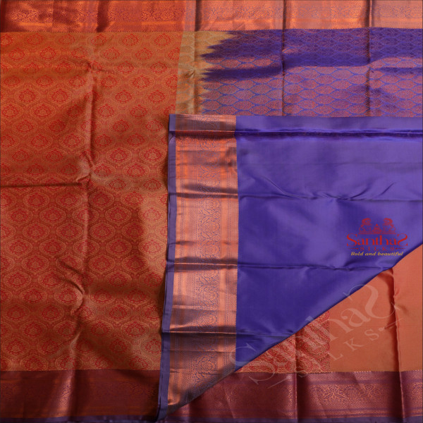 PEACH COLOUR BODY WITH JACQUARD FLORAL EMBOSED WITH CONTRAST LAVENDAR BLOUSE & BORDER