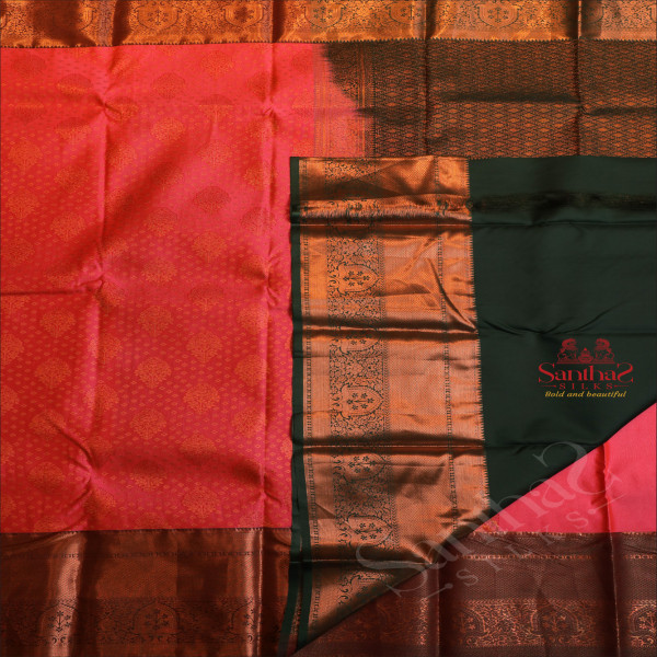 PINK COLOUR BODY WITH JACQUARD FLORAL EMBOSED WITH CONTRAST BLOUSE & BORDER