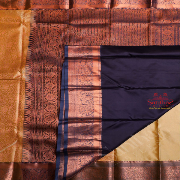 SANDAL COLOUR BODY WITH JACQUARD FLORAL EMBOSED IN COPPER ZARI WITH CONTRAST BLOUSE & BORDER