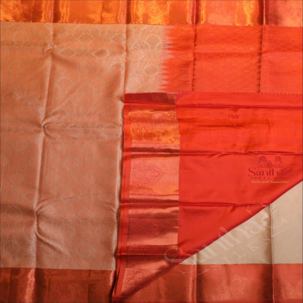 IVORY COLOUR BODY WITH JACQUARD FLORAL EMBOSED WITH CONTRAST BLOUSE & BORDER