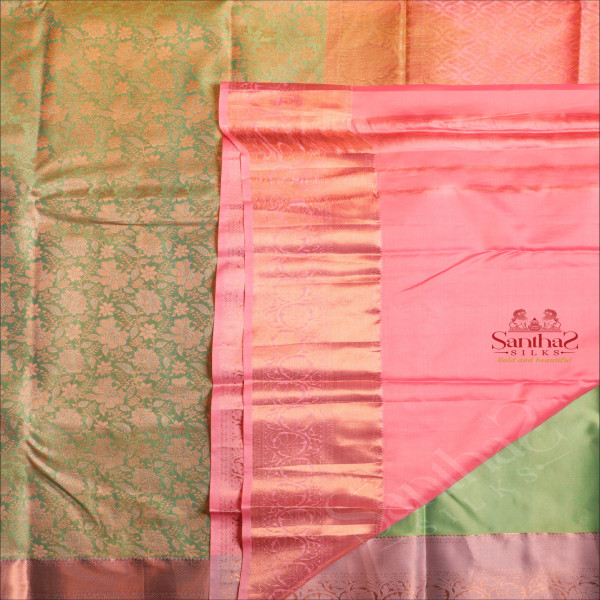 ELACHI GREEN COLOUR BODY WITH JACQUARD FLORAL EMBOSED WITH CONTRAST BLOUSE & BORDER