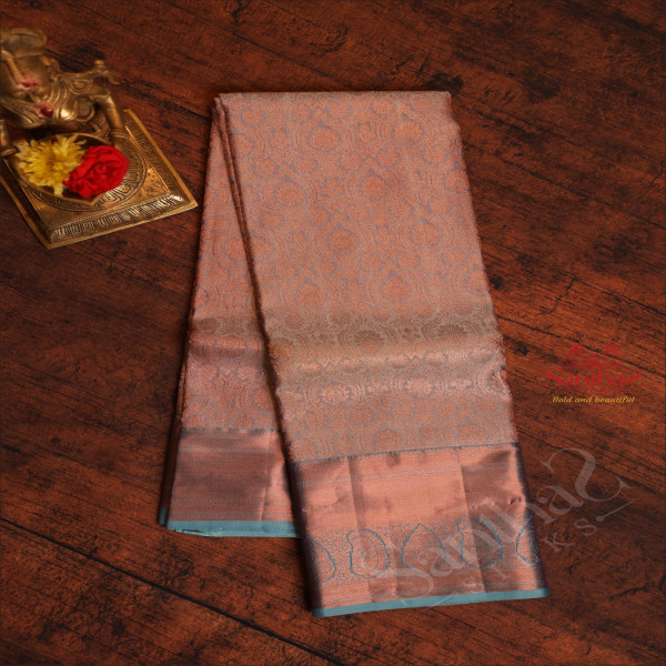 PIGEON BLUE COLOUR BODY WITH JACQUARD FLORAL EMBOSED WITH CONTRAST BLOUSE & BORDER