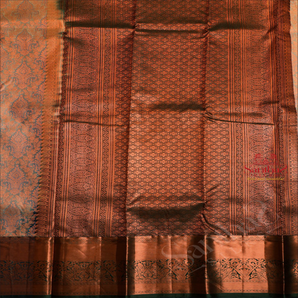 BEAU BLUE COLOUR BODY WITH JACQUARD FLORAL EMBOSED WITH CONTRAST BLOUSE & BORDER