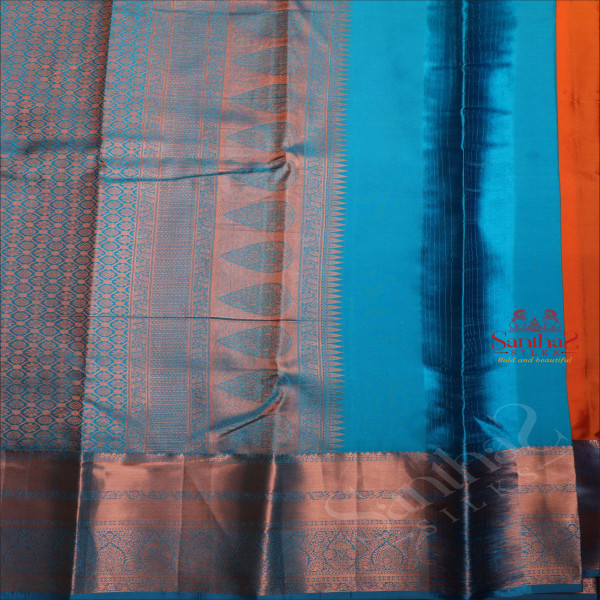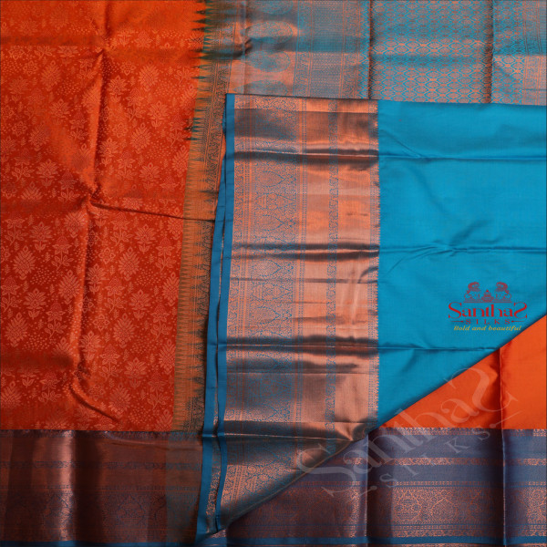 ORANGE COLOUR BODY WITH JACQUARD FLORAL EMBOSED WITH CONTRAST BLOUSE & BORDER
