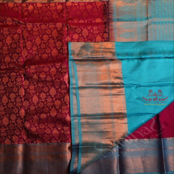 PURPLE COLOUR BODY WITH JACQUARD FLORAL EMBOSED WITH CONTRAST BLOUSE & BORDER