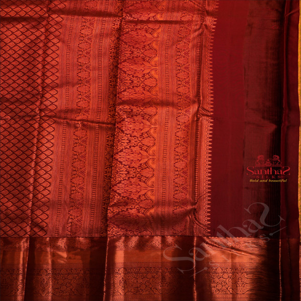 MEHANDI GREEN COLOUR BODY WITH JACQUARD FLORAL EMBOSED WITH CONTRAST DARK RED BLOUSE & BORDER