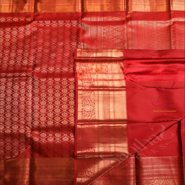 DARK RED COLOUR BODY WIETH GOLDEN ZARI HEAVY DESIGNS AND SELF PALLU & BLOUSE