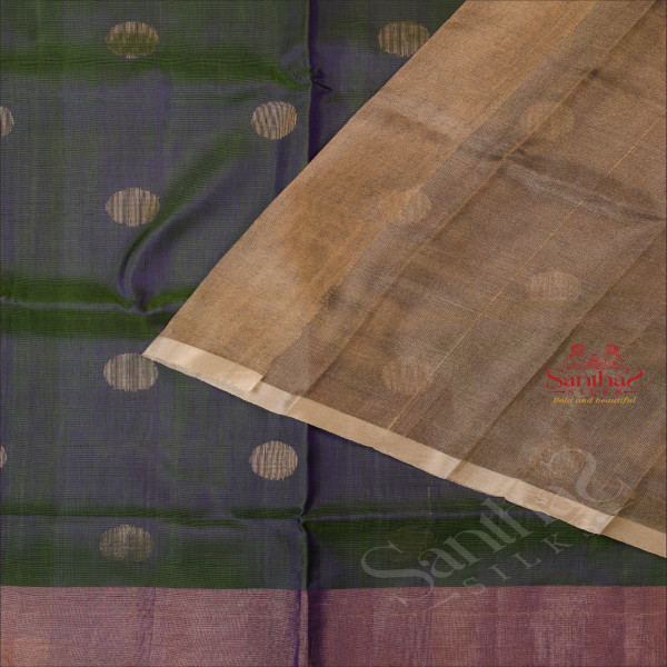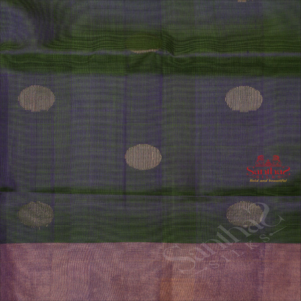 DUAL BLUE SHADE COLOUR BODY WITH SILVER ZARI COIN BUTTA WITH CONTRAST BLOUSE & BORDER