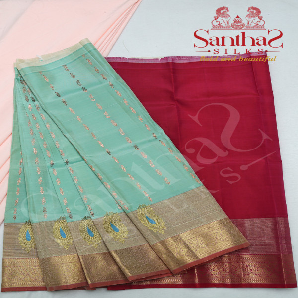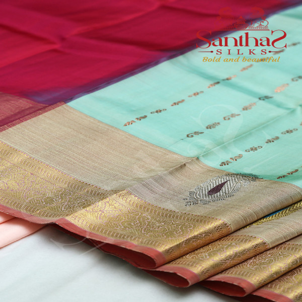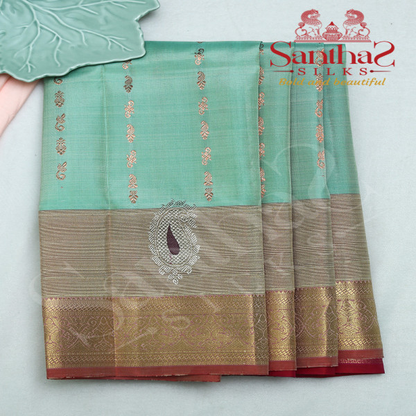 PISTA GREEN IN BODY WITH CONTRAST BLOUSE & BORDER