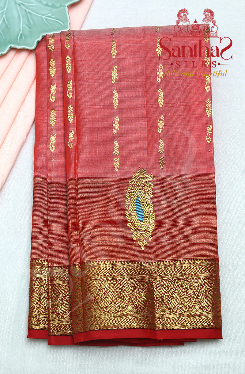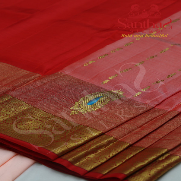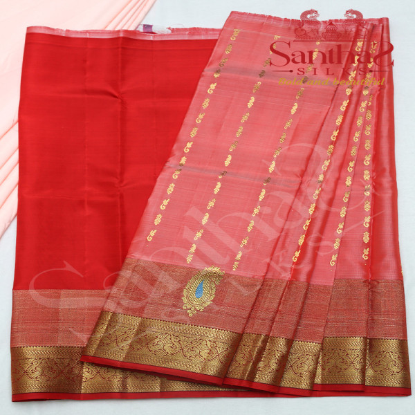 PEACH COLOUR IN BODY WITH CONTRAST BLOUSE & BORDER