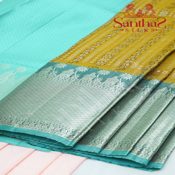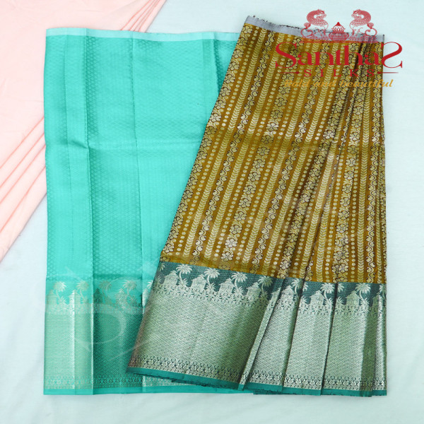 MEHANDHI GREEN BODY WITH CONTRAST BLOUSE & BORDER