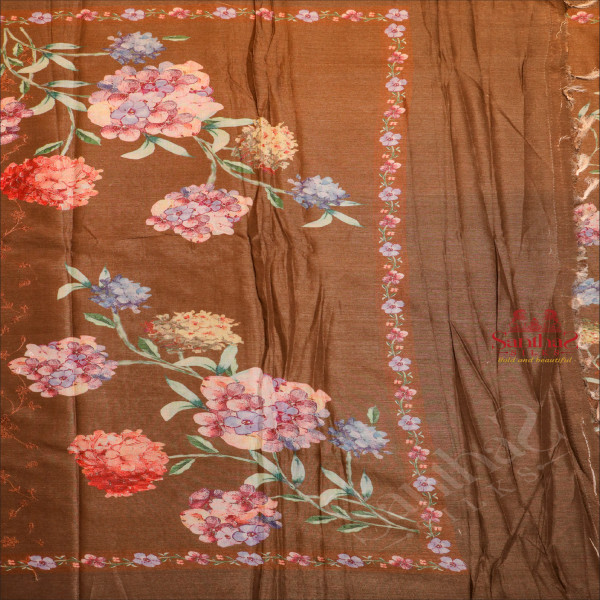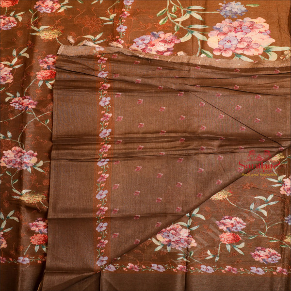 CHANDERI SAREE IN ALOEWOOD BROWN COLOUR WITH FLORAL PATTERN WITH SELF BLOUSE