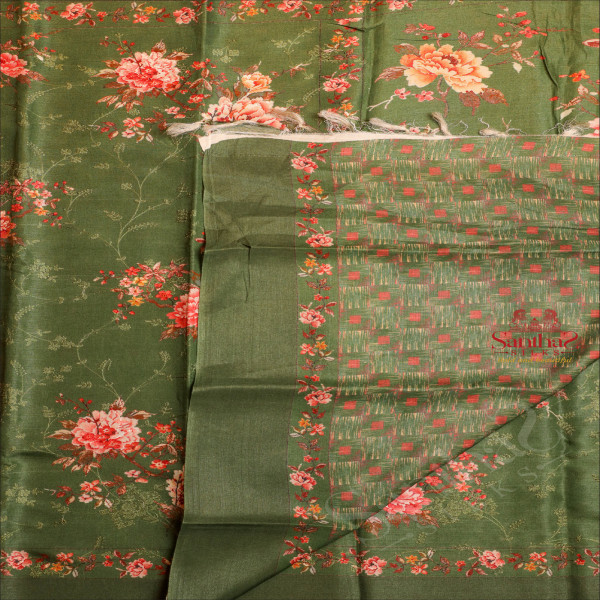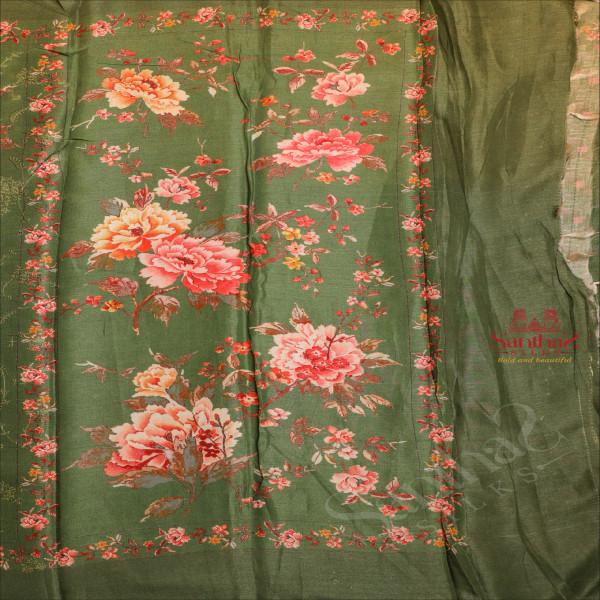 CHANDERI SAREE IN GREEN COLOUR WITH FLORAL PRINT WITH SELF BLOUSE