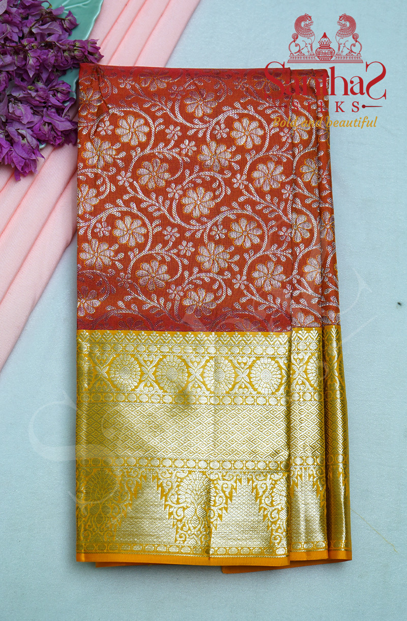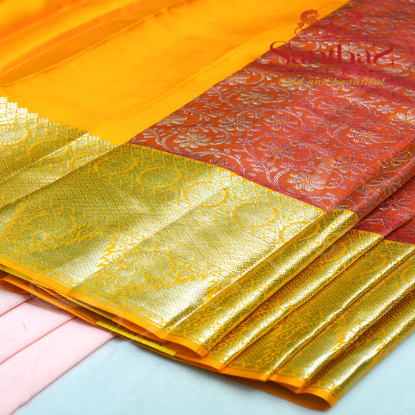 GOLDEN ORANGE IN BODY FLORAL WITH CONTRAST BLOUSE AND BORDER