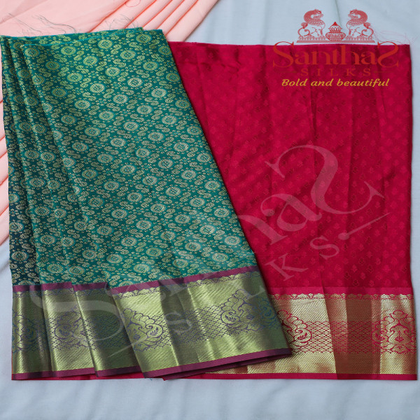 BOTTLE GREEN BODY WITH GOLDEN ZARI BORDER & BLOUSE