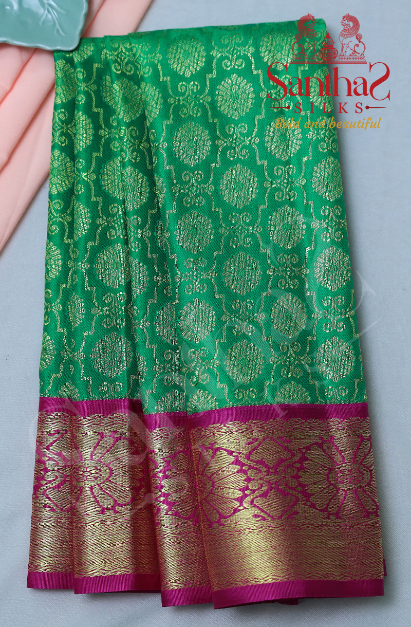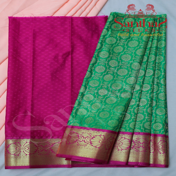 PARROT GREEN BODY WITH PINK BORDER & BLOUSE