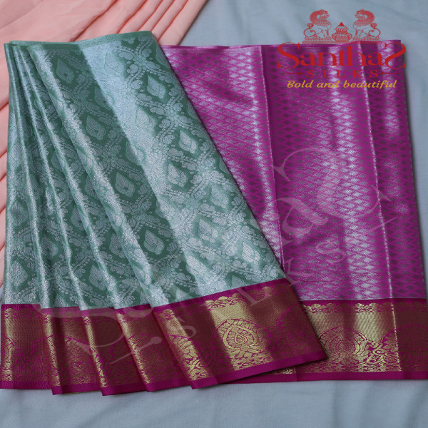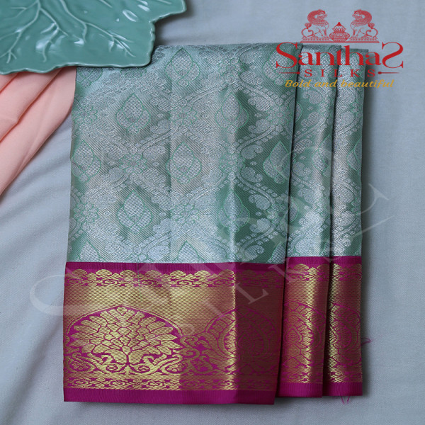 PISTA GREEN TISSUE WITH PINK BORDER & BLOUSE