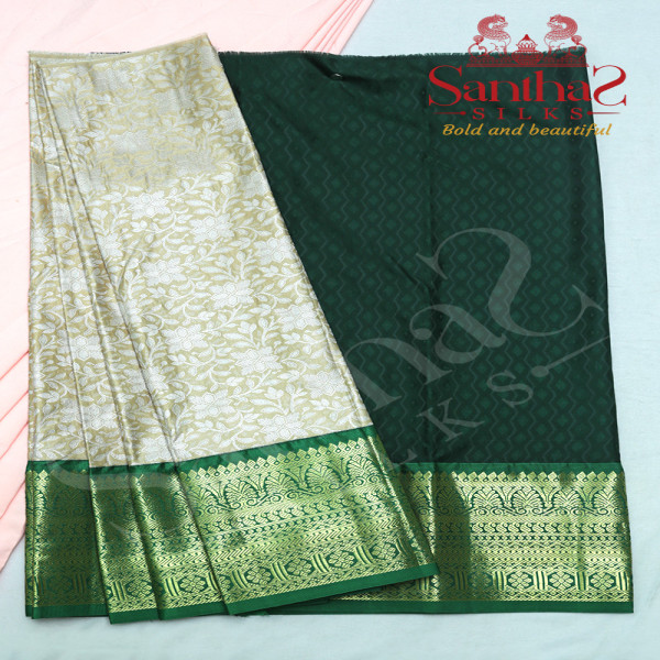 SILVER COLOUR BODY IN FLORAL PATTERN WITH CONTRAST BLOUSE & BORDER