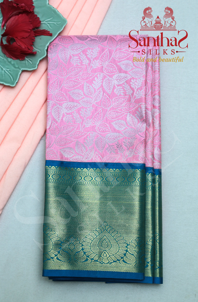 BABY PINK IN BODY WITH CONTRAST BLOUSE & BORDER