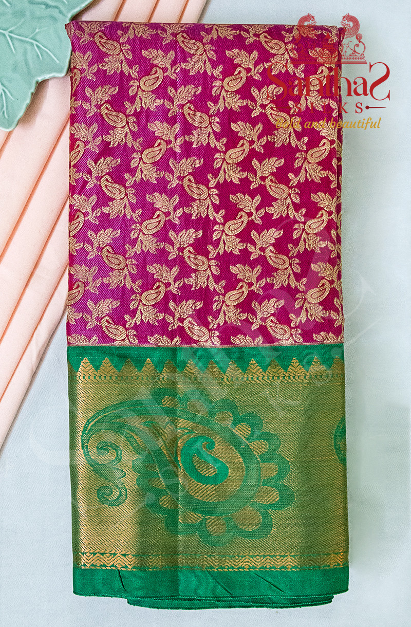 PINK COLOUR BODY IN LEAF BUTTA WITH CONTRAST BLOUSE & BORDER