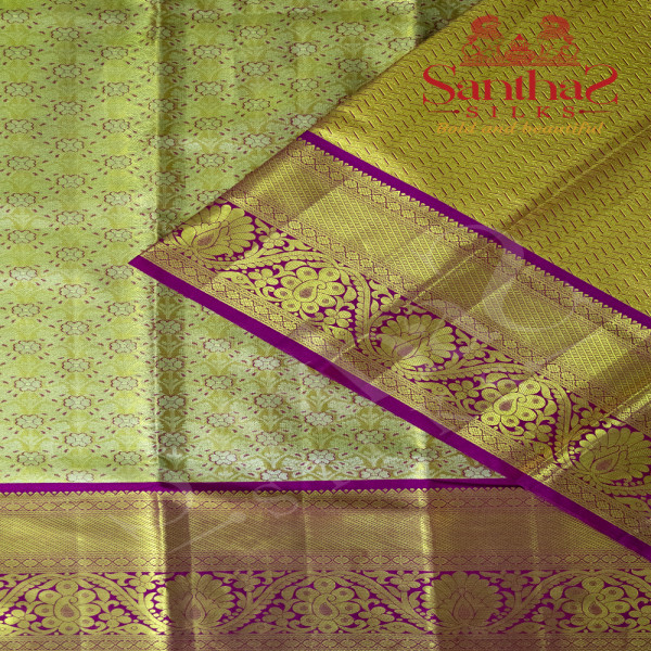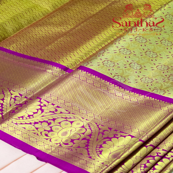 GOLD TISSUE BODY IN FLORAL PATTERN WITH CONTRAST BLOUSE & BORDER